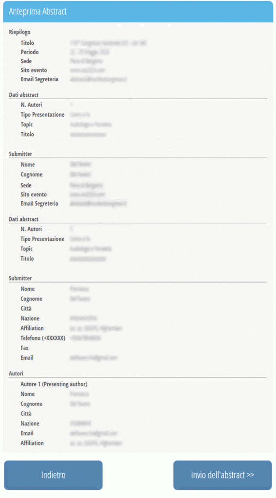 Se i dati caricati invece sono corretti, cliccare sul pulsante “Invio abstract”.