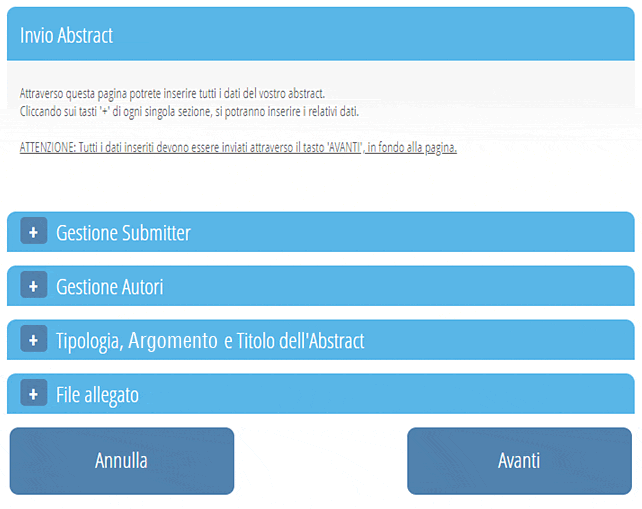 Premere il pulsante “Invio Abstract”.